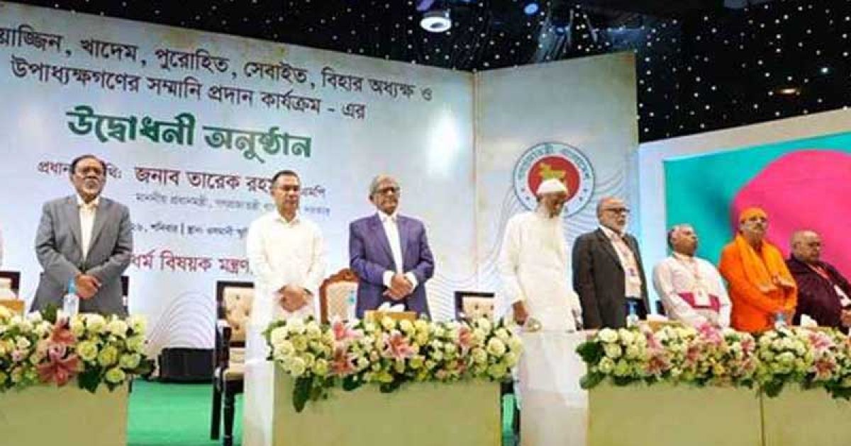 ডেস্ক নিউজঃ দেশের বিভিন্ন ধর্মীয় উপাসনালয়ের ইমাম, মুয়াজ্জিন, পুরোহিত ও যাজকসহ ধর্মীয় নেতাদের জন্য মাসিক সম্মানী প্রদান কার্যক্রমের আনুষ্ঠানিক উদ্বোধন করেছেন প্রধানমন্ত্রী তারেক রহমান।